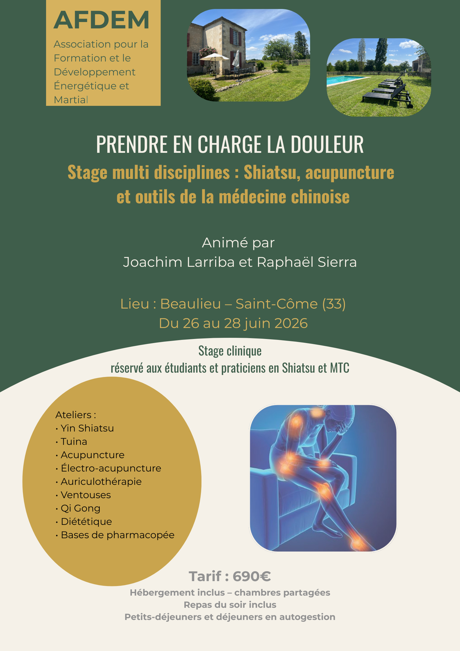 Il est pensé comme une immersion pratique autour de la prise en charge de la douleur en cabinet.